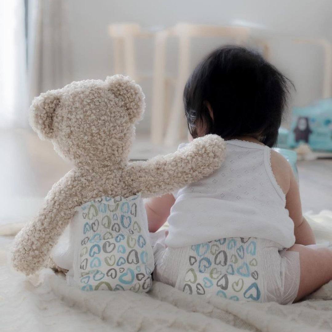 Crafted with premium cotton blend and other well-chosen materials, our diapers are luxuriously soft, breathable, hypoallergenic, and free from harsh chemicals, chlorine, perfumes, lotions, and latex.