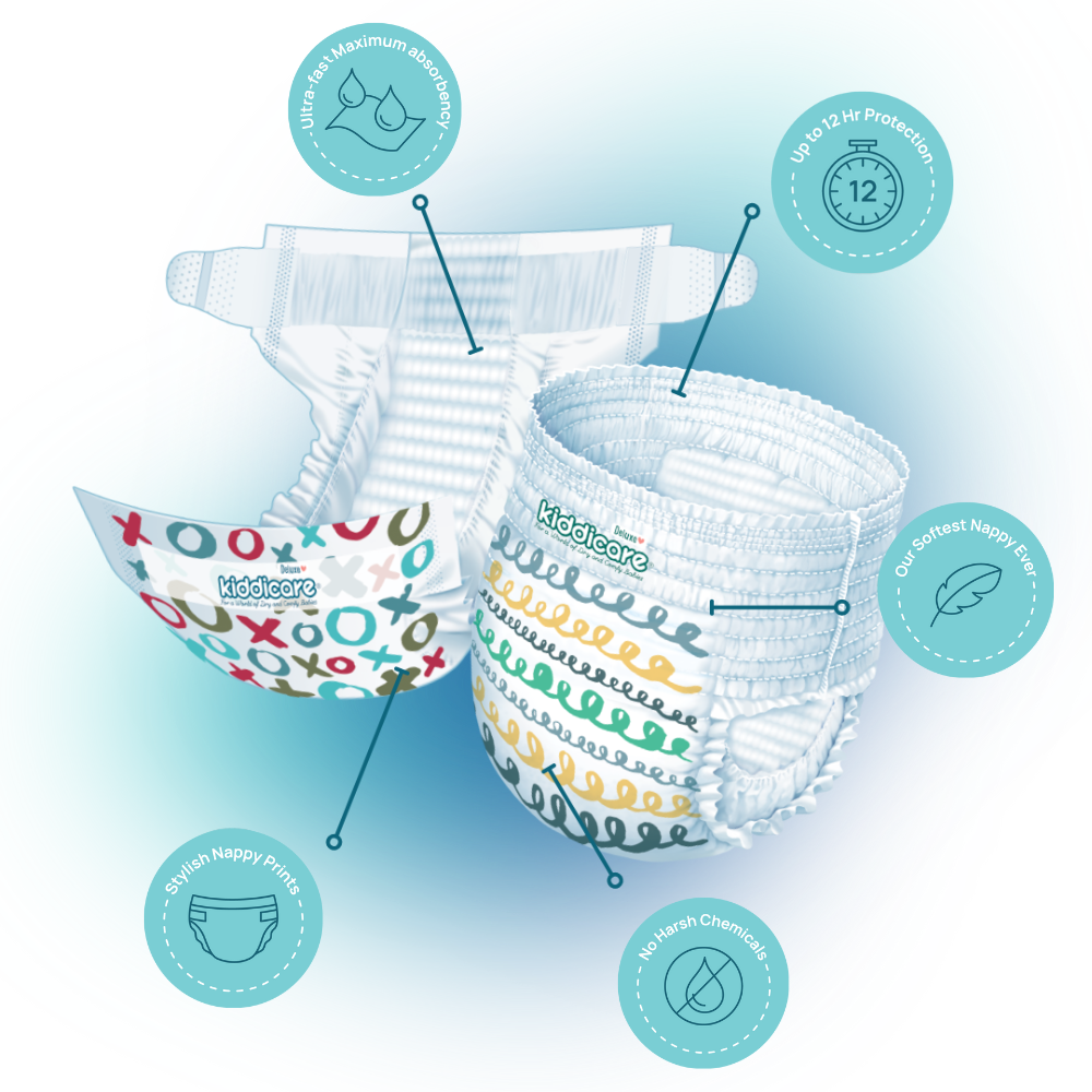 Kiddicare Deluxe Unisex Diaper Pants - our greatest diaper pants yet! Walker size, while you try to catch your baby on the move, we'll catch everything else. Super soft, super absorbent, super cute.