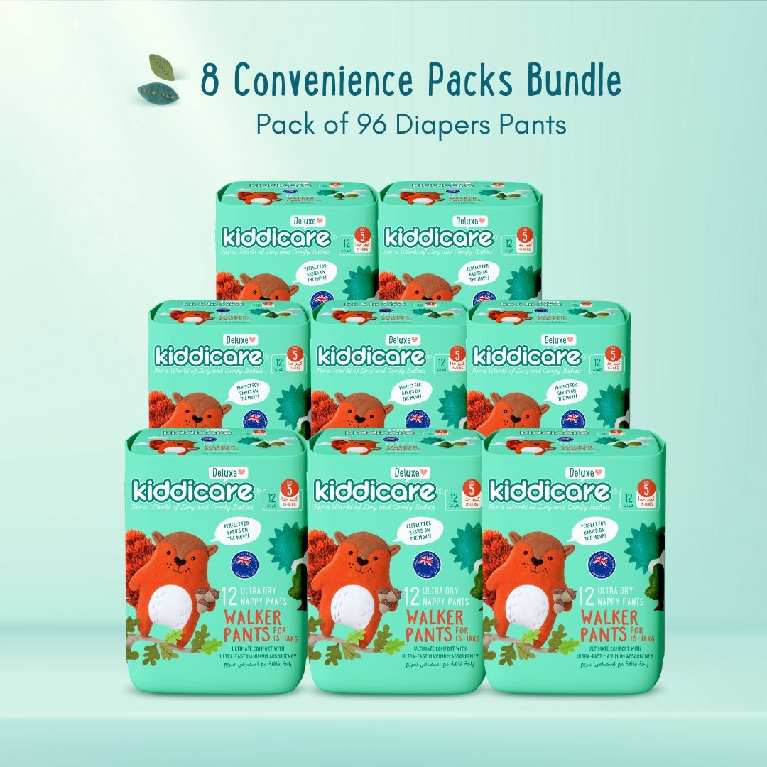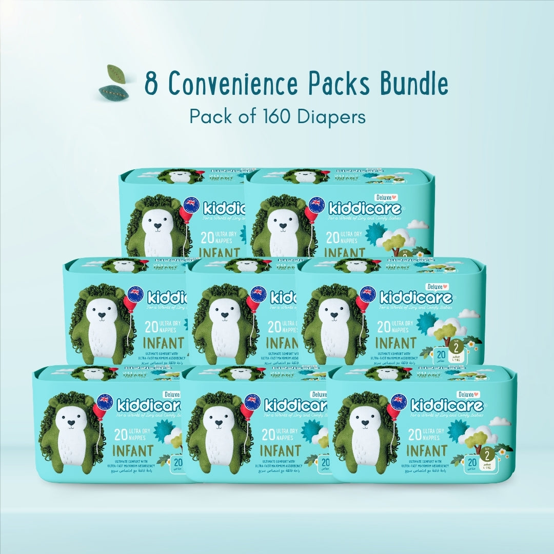 حفاضات كيدي كير ديلوكس للجنسين - أفضل حفاضات لدينا حتى الآن! مقاس مناسب للأطفال الصغار، بينما تحاولين الإمساك بطفلك أثناء الحركة، سوف نعتنى بكل شيء آخر. فائقة النعومة، فائقة الامتصاص، فائقة الجمال.