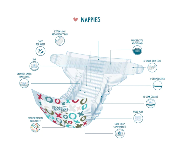• Kiddicare diapers are luxuriously soft, breathable, hypoallergenic, and free from harsh chemicals, chlorine, perfumes, lotions, and latex.